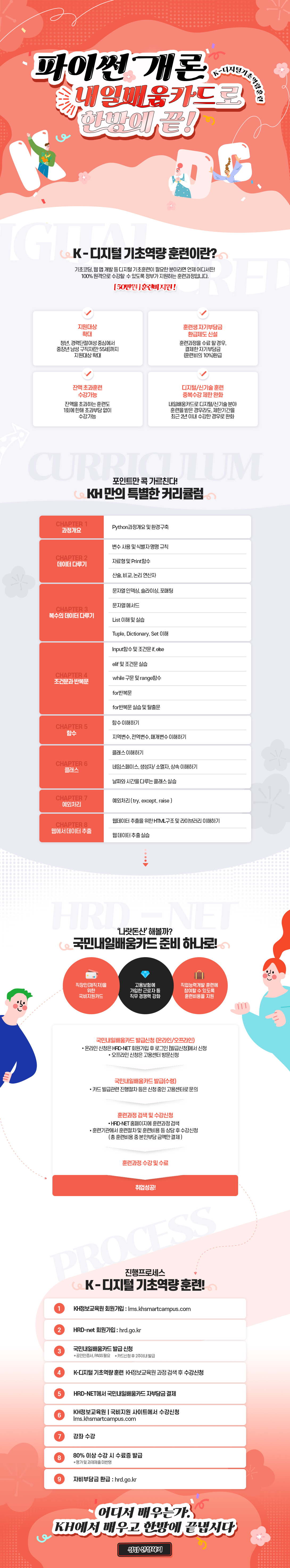 KH의 전 과정은 NCS(국가교육표준화)기준을 준수하며 100% 무료, 전액 국비지원을 받으실 수 있습니다.