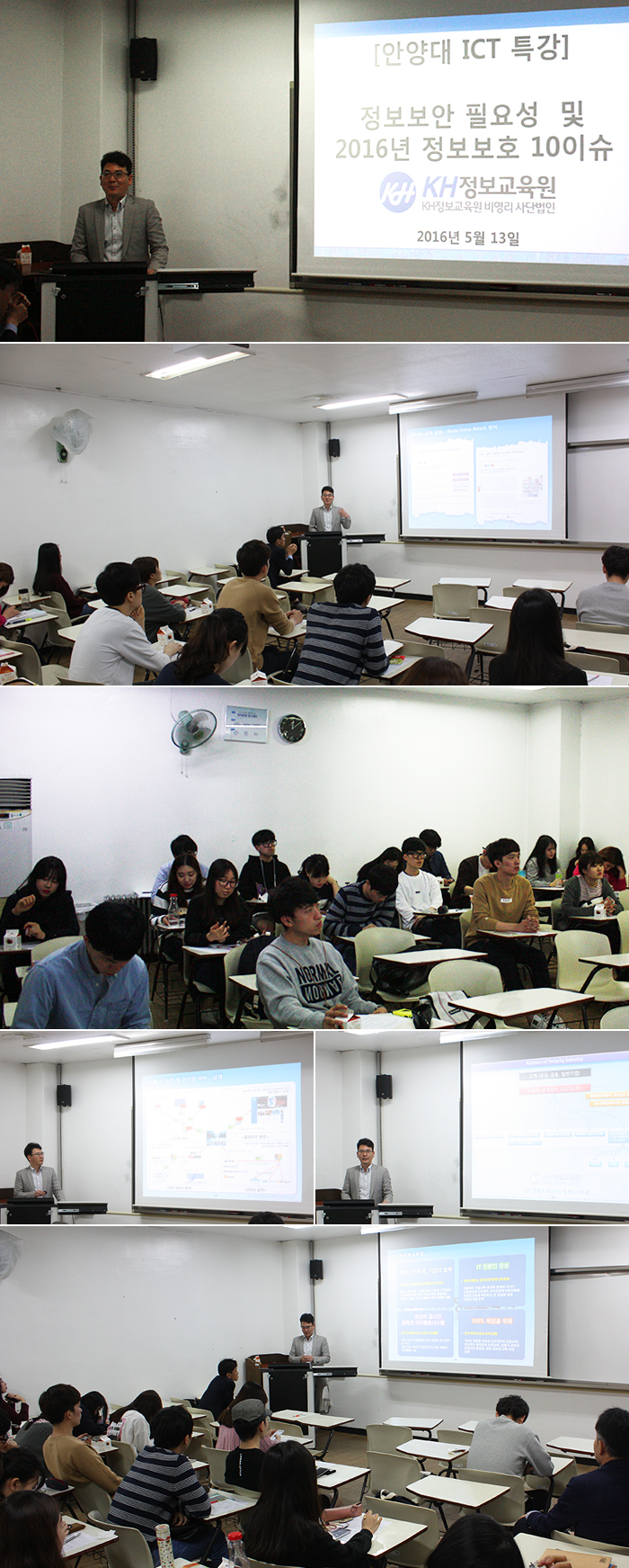 금일은 "정보보안 필요성 및 정보보호 10대 이슈"를 주제로 ICT특강이 진행됐습니다.