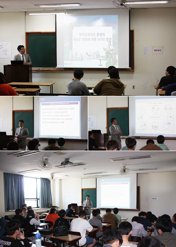 오전과 오후 두 차례에 걸쳐 "엔터프라이즈 환경의 변화에 따른 IoT의 방향"을 주제로 ICT특강이 진행됐습니다.