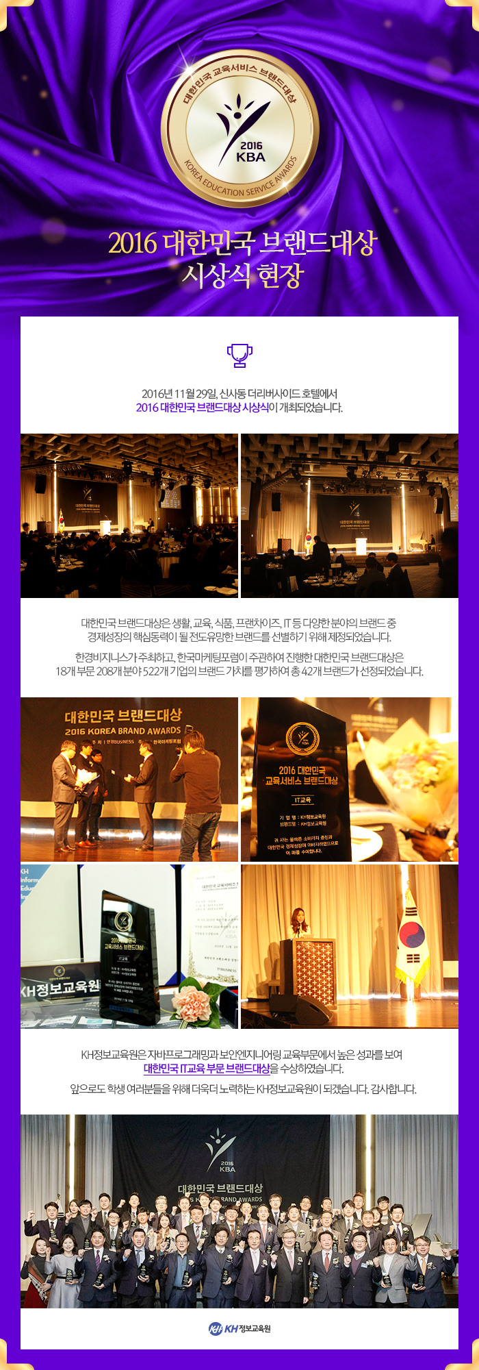 KH정보교육원, 대한민국 IT교육부분 브랜드대상 수상!