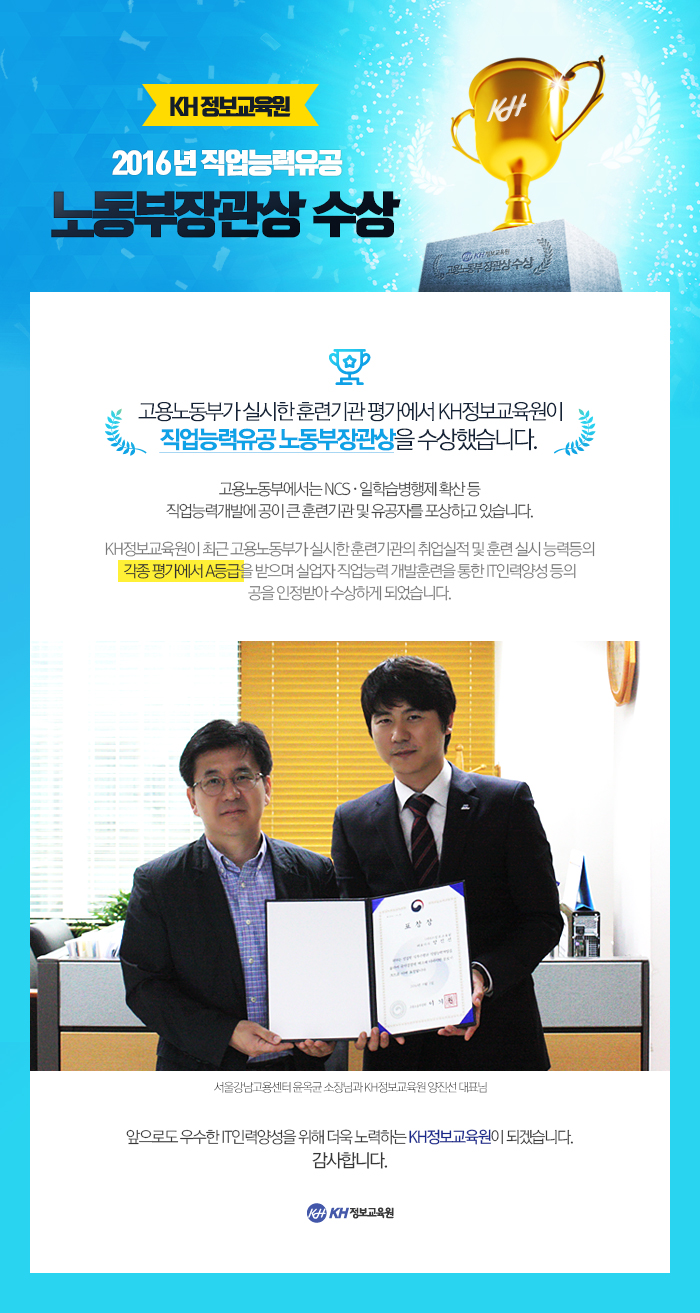 KH정보교육원 노동부장관상 수상!