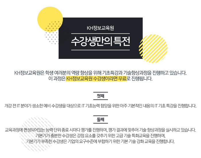 수료생과 함께하는 KH정보교육원의 다양한 소식을 만나보세요.