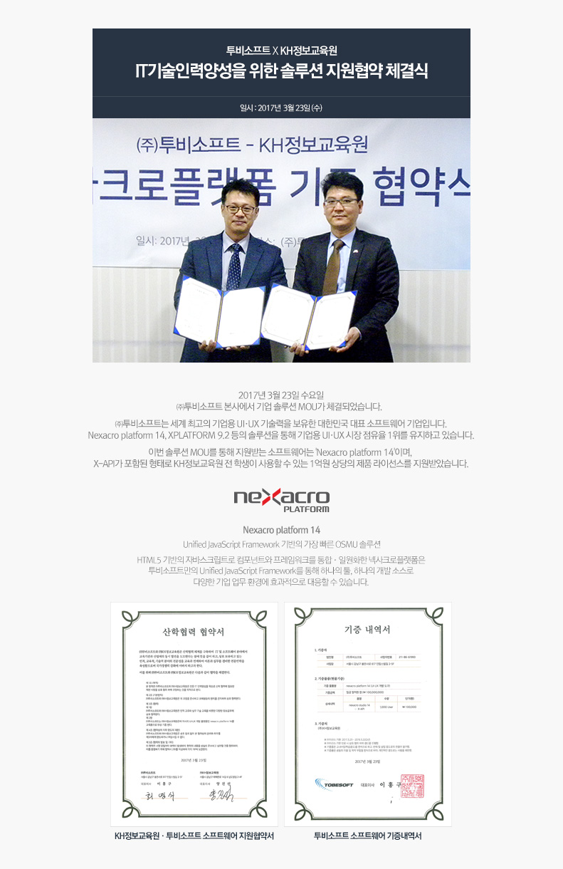 (주)투비소프트/KH정보교육원 솔루션 MOU체결