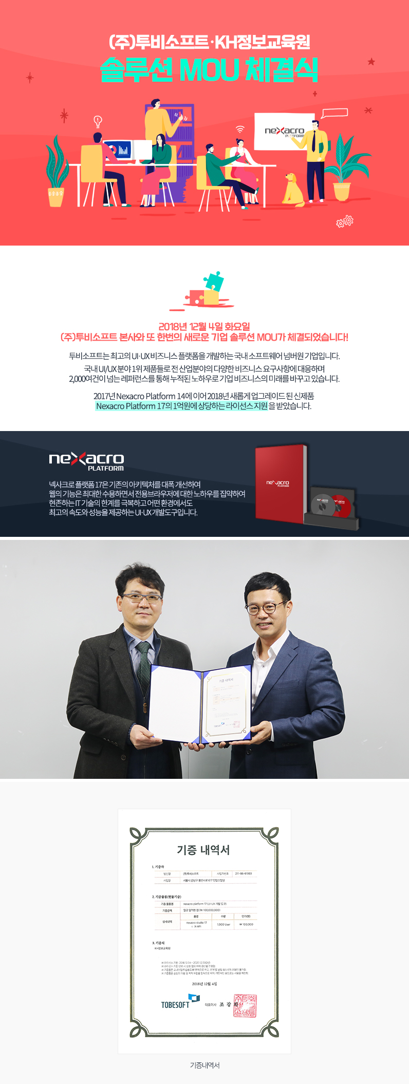 (주)투비소프트/KH정보교육원 솔루션 MOU 체결