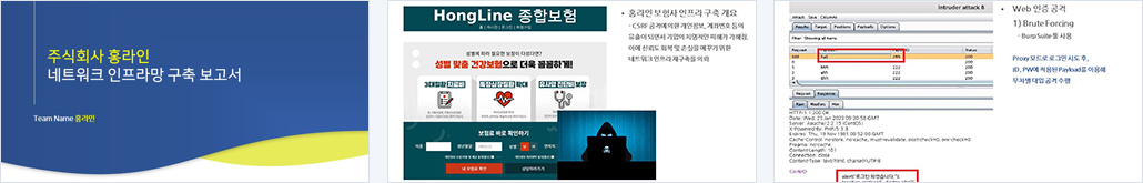 보험사 홍라인은 고령화시대에 맞춰 보험 가입 설정 기준을 대폭 완화시켰다. 이 결과 가입자 수가 부쩍 늘어나게 되었고, 입소문을 타면서 가입자는 더욱 늘어났다. 이를 악용한 타 보험사 팀장이 홍라인의 임직원들에게 계정을 탈취할 수 있는 링크가 포함된 담긴 피싱 메일을 보냈고(CSRF), 이를 클릭한 임직원(관리자)의 권한을 도용하여 고객들의 개인정보, 계좌번호 등 중요한 정보가 탈취되었다. 이에 홍라인는 신뢰도 저하, 고객 이탈이라는 막대한 손실을 입게 되었고, 신뢰도 회복 및 손실을 메꾸기 위해 강력한 보안, 안정적인 서비스를 제공하는 인프라망 재 구축을 자회사 홍시큐리티에 요청하였다. 홍시큐리티는 홍라인의 인프라에 공개 모의해킹을 진행하면서 취약점을 분석했다. 결과로 인프라 네트워크 및 서버의 취약점, 가용성 등의 문제를 확인하였고 방화벽 솔루션과 이중화 장치들을 이용하여 보안과 가용성을 해결한다. 고객들에게 안정적인 서비스를 제공함으로써 떨어진 신뢰도를 다시 높이고 이탈한 고객들의 재 유입을 기대한다. |