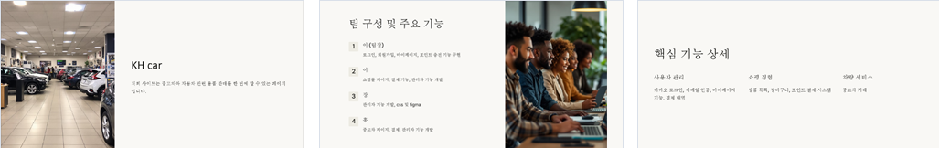 개요 중고차와 렌터카, 자동차 관련 용품 판매를 한 번에 할 수 있는 페이지입니다.