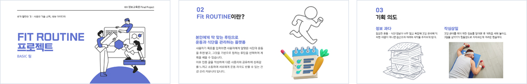 Fit Routine은 사용자의 현재 신체 정보와 운동 목표를 입력받아, 공공데이터를 기반으로 맞춤형 식단과 운동을 추천하고, 이를 바탕으로 자신만의 루틴을 설정할 수 있는 건강 관리플랫폼입니다.