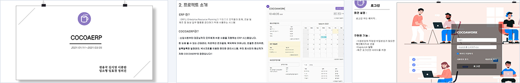 알록달록한 일정관리, 넥사크로를 이용한 편리한 관리시스템, 우리 회사만의 메신저가 주안점 입니다. |