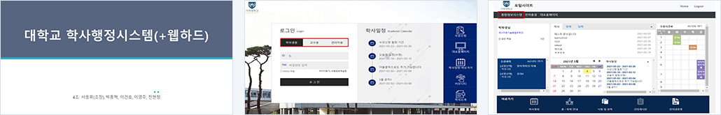 보편적 대학 학사행정 및 학생 계정별 웹하드 기능을 처리할 수 있는 대학 홈페이지 및 내부 관리 시스템을 넥사크로 및 스프링으로 개발 |