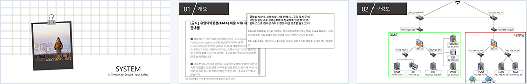 보호하고 내부망에 대한 보안을 위해 각각의 망에 보안 인프라를 구축하여