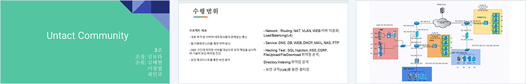 - 방화벽, IDS를 통해 외부의 공격으로 부터 DMZ 및 내부 망 보안 및 내부 망