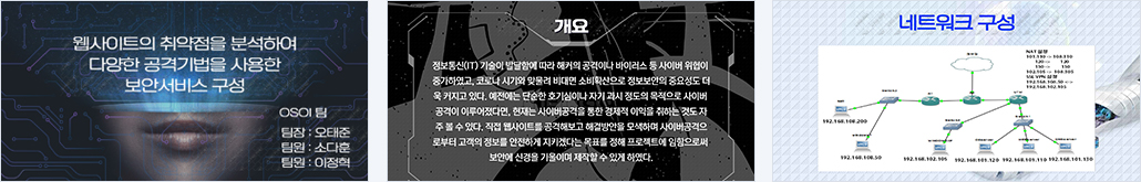 - XSS, SQL Injection, scanning 공격을 통해 취약점 분석 - 방화벽을 이용하여 보안 강화 |