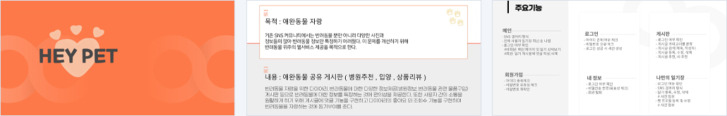 - 반려동물의 상태를 개인적으로 기록하면서 지역 친구들과 친목할 수 있는 웹사이트 - 반려동물 일정/ 생일/ D-DAY를 기록할 수 있는 캘린더 - 지역 친구들 정보를 나눌 수 있는 게시판 기능 |