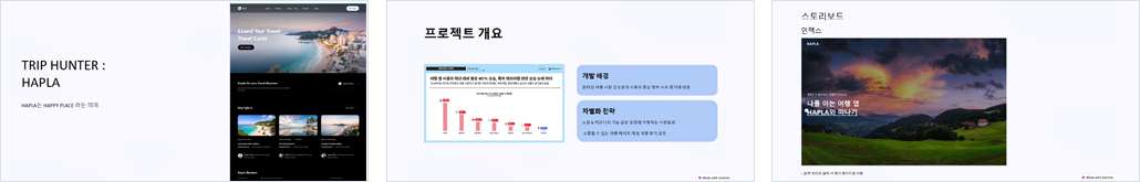 | 설계의 주안점 | 1. 사용자 중심의 정보 설계: 사용자가 원하는 정보를 쉽게 찾을 수 있도록 정보의 구조와 배치를 설계하고, 이를 통해 정보 접근성과 사용자 만족도 향상 및 직관적인 UI/UX를 통해 사용자에게 편의성 제공 2. 콘텐츠 품질과 신뢰성 확보: 정확하고 신뢰할 수 있는 여행 정보를 제공하기 위해 각종 정보에 관한 API를 사용함으로써 웹사이트의 유용성과 신뢰성을 향상에 기여 3. 상호작용성 및 커뮤니티 기능 강화: 사용자 간의 원활한 정보 공유와 소통을 위해 커뮤니티 기능을 제공하고, 이를 통해 사용자 참여 유도 |