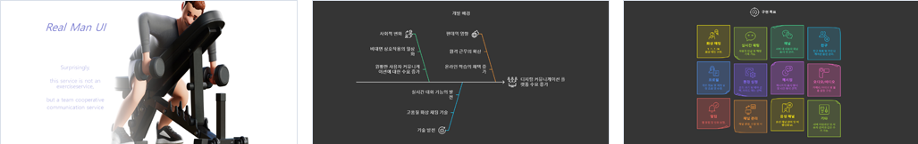 | 팀장/팀원 | 이**(팀장) : 홈 화면(웹 소개 페이지) 구현 - 가장 처음 페이지인 홈 화면을 구현 실시간 1:1, N:N텍스트 채팅 기능 구현 - stomper, firebase를 이용해 실시간 채팅기능 구현 실시간 1:1, N:N 음성, 화상채팅 기능 구현 - WebRTC를 이용해 실시간 음성, 화상채팅 기능 구현 코드리뷰 - 프로젝트 깃허브 관리 및 팀원들의 코드리뷰 |