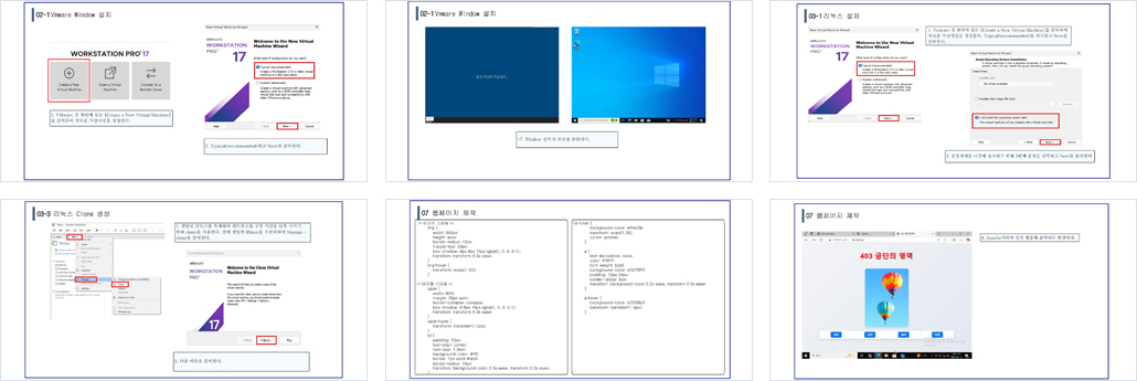 이** : 리눅스로 네트워크 및 서버 구축, VMware내 NAT 환경으로 서버 이전, 수업용 서버에 Apache 웹 서버설치 및 권한부여, 수업용 서버 홈페이지 제작